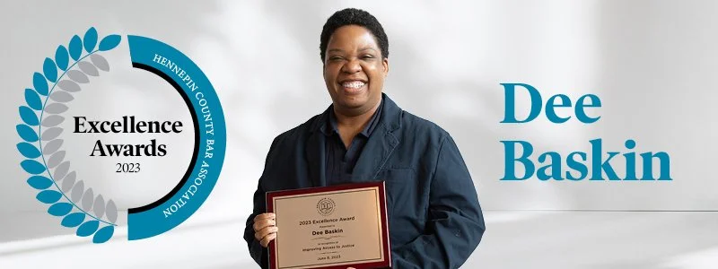 Dee was awarded the Hennepin County Bar Association’s Excellence Award for Improving Access to Justice. As the executive director of Loan Repayment Assistance Program of Minnesota, they have been a champion for legal aid attorneys seeking public service loan forgiveness. Dee has helped Minnesota attorneys navigate each pause on student loan payments through articles, CLE presentations, and social media updates.