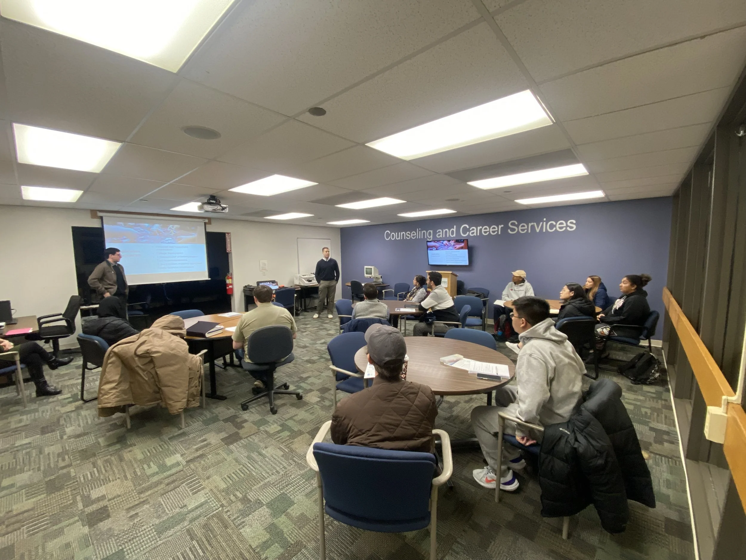 Cooke Scholar Thomas Emens and Cooke Alum Jonathan Finnerty presented about the Transfer Scholarship at Middlesex College in New Jersey in November.