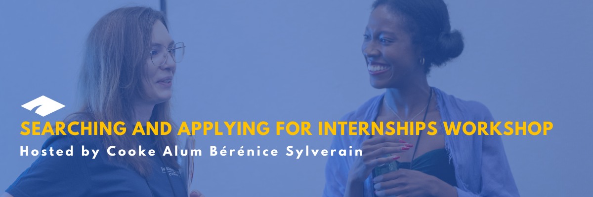 Are you looking for a summer internship? Are you overwhelmed or confused by the process? Join this workshop to gain insight and guidance into searching and applying for these opportunities. Cooke Alum Bérénice Sylverain will discuss tips and tricks to landing an internship on Thursday, February 26 from 8-9 p.m. ET.